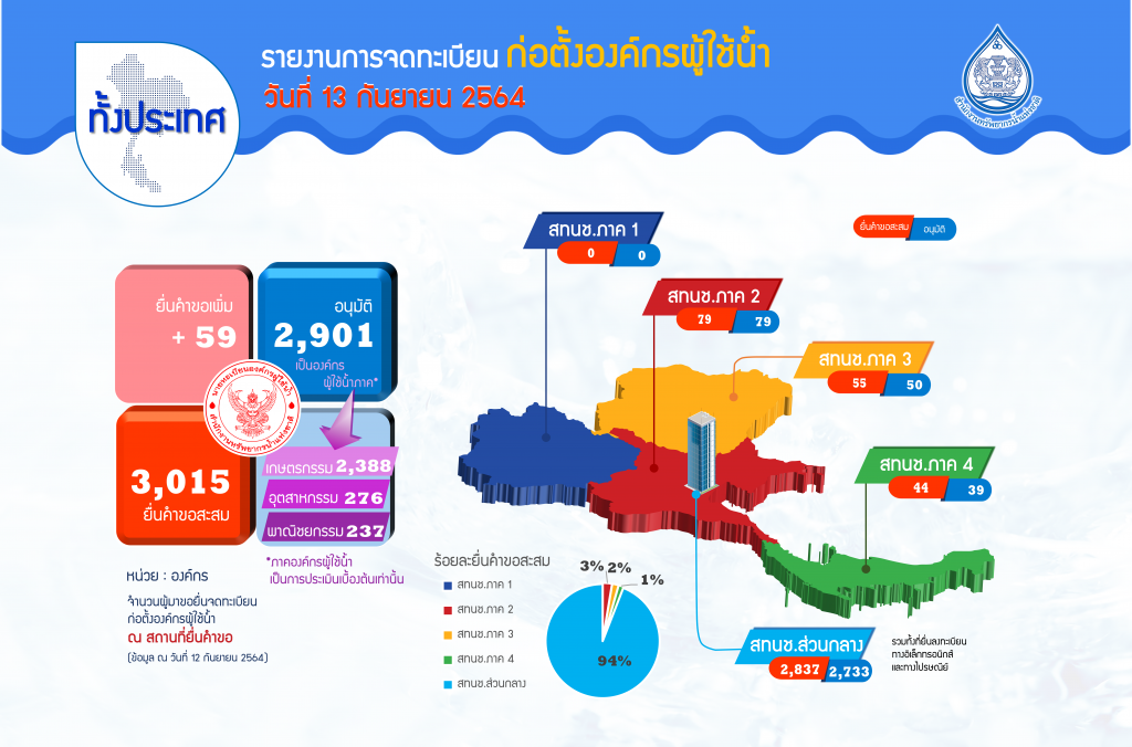 Previous Post รายงานการจดทะเบียนก่อตั้งองค์กรผู้ใช้น้ำ ประจำวันที่ 6 กันยายน 2564 Next Post รายงานการจดทะเบียนก่อตั้งองค์กรผู้ใช้น้ำ ประจำวันที่ 20 กันยายน 2564