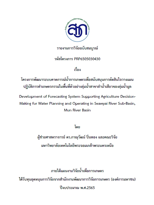 โครงการพัฒนาระบบคาดการณ์น้ำการเกษตรเพื่อสนับสนุนการตัดสินใจวางแผนปฎิบัติการทำเกษตรกรรมในพื้นที่ตัวอย่าง